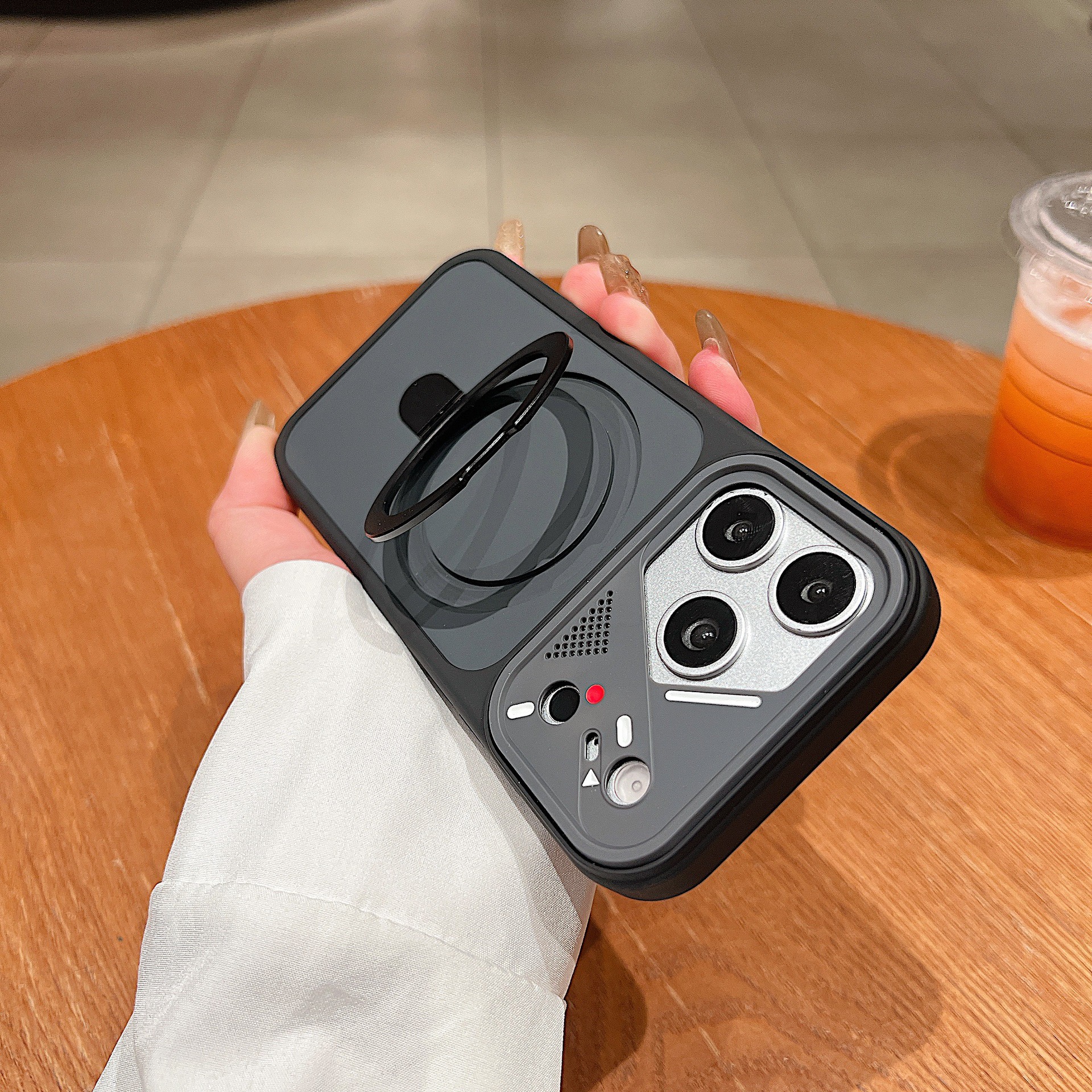Mecha-style lens frame magnetic phone case