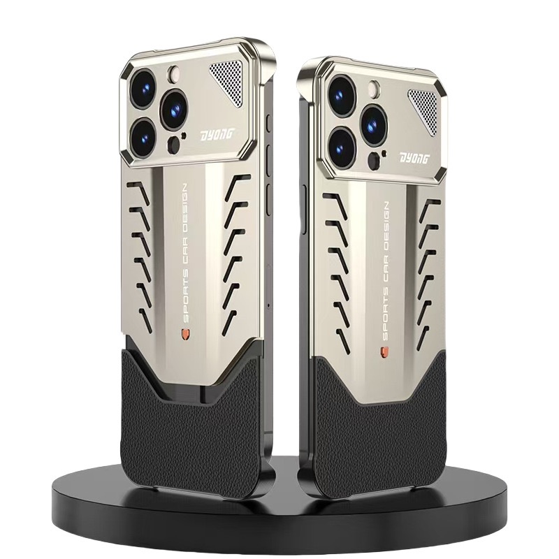 Enhance the performance of your iPhone with our Supercar Design Metal Heat Dissipation Phone Case. Crafted with titanium, this sleek case comes in silver, grey, red, blue, and desert gold. Compatible with iPhone models from iPhone13 to iPhone16 Pro Max, the case's unique design ensures efficient heat dissipation, keeping your device cool even during intense usage. Protect your phone in style with this innovative and durable phone case.